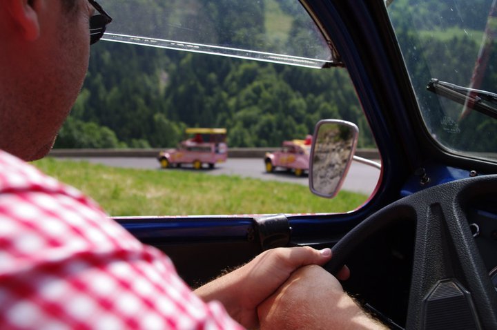 Tous les jours pendant le Tour, nous allons suivre une équipe. Non, pas l’équipe dont nous vous parlions le 1er avril dernier. Non, ce n’est donc pas une équipe cycliste (comme le fait FrancetvSport avec Europcar) ! Nous sur Culture Sport, nous allons suivre une bande de joyeux lurons qui, pendant trois semaines, vont animer la Grande Boucle avec leur bonne humeur communicative et leur musique toujours autant entraînante (Cochonou, le bon goût comme on l’aime chez nous !). Pour ceux qui ne pourraient pas se déplacer sur les routes de France pour les voir, une vidéo sera mise en ligne, avant le départ de chaque étape, ici même (sur cet article). Vous pourrez alors découvrir le quotidien des « cochons et cochonnes » (*) du Tour, leurs 2CV, ses conducteurs, ses goodies, mais aussi… leurs animatrices et les autres membres du staff qui assurent le bon déroulement de ce merveilleux voyage long de plus de 3400 kilomètres. (*) Cochons, cochonnes… Cochonou. Non ?