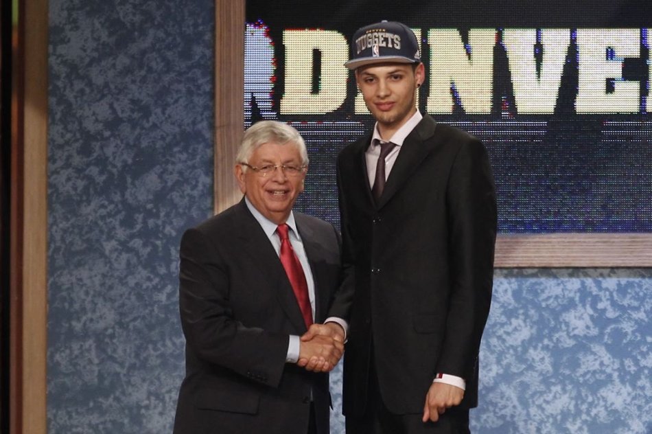 La photo date de 2012. Sur ce cliché, Evan Fournier semble impressionné, presque déboussolé. Et pour cause, le Val-de-Marnais venait juste de se faire drafter en vingtième position par Denver. Le joueur français avait donc dû monter sur la scène du Prudential Center de Newark (New Jersey) avant de serrer la main de David Stern, le grand manitou de la NBA. Pour rappel, il y a huit ans, l’arrière, qui joue également ailier, était le vingt et unième basketteur tricolore à intégrer la prestigieuse NBA.