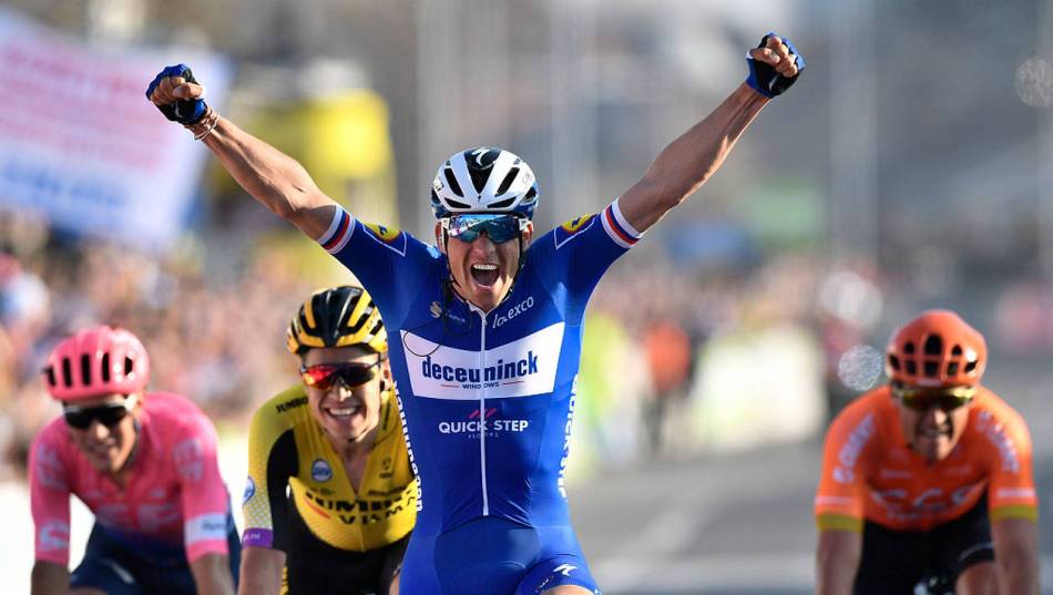 Vainqueur : Elia Viviani (Bel, DQT). Leader : Julian Alaphilippe (Fra, DQT).